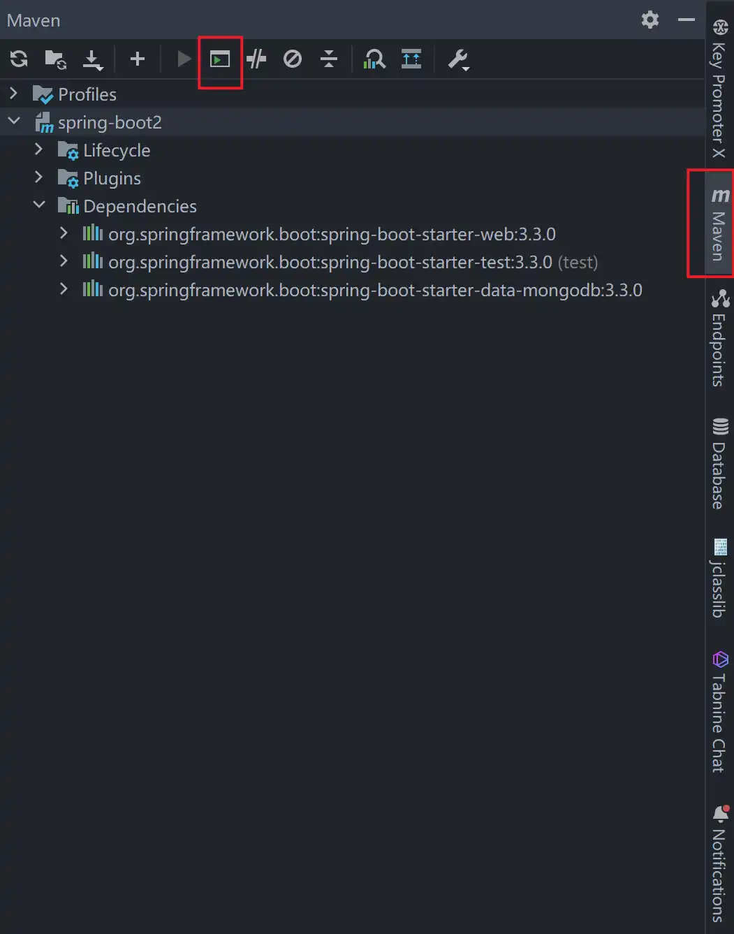 打开上次的项目,右侧菜单选择maven,选择Execute Maven Goal按钮。